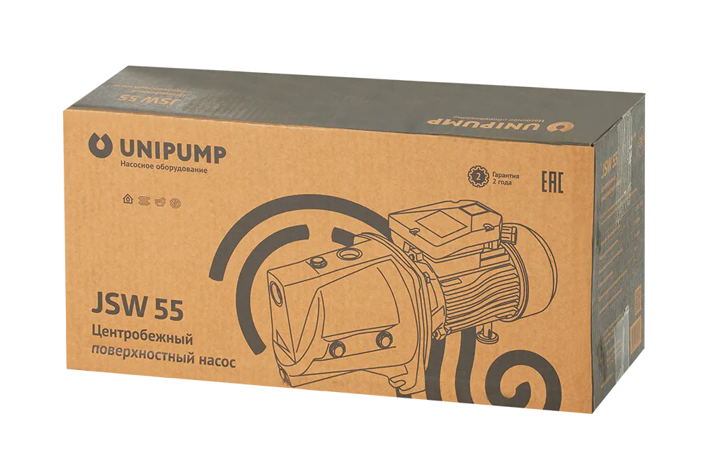 Поверхностный насос UNIPUMP JSW 55 с укороченным эжектором, чугунным корпусом, рабочим колесом из латуни, медной обмоткой статора. Поверхностный насос JSW предназначен для подачи чистой холодной воды из скважин и колодцев (глубиной не более 8 метров), открытых водоемов, резервуаров и других источников водоснабжения.